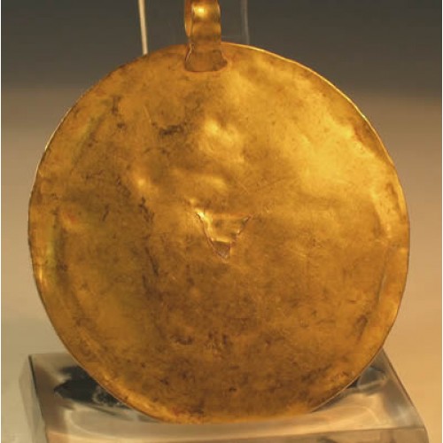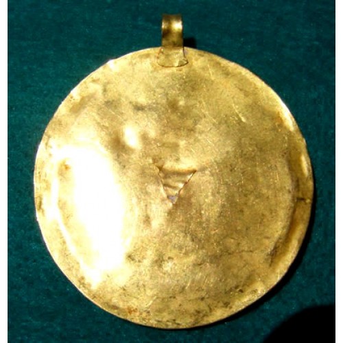 Huge Roman Gold pendant decorated with Nymph and Satyr. Circa 2nd century AD. Ex private London collection, purchased before 1950. Most likely southern Italy.